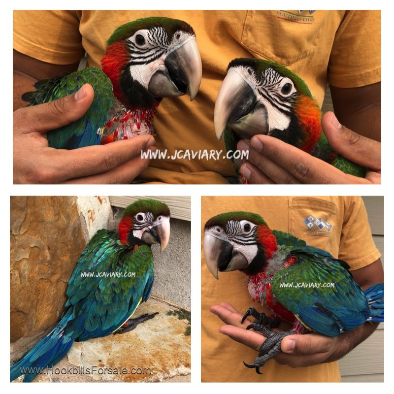 Accepting deposits on these 2 very sweet baby Harlequin Macaws. These babies will be ready mid-January for pick up or shipping. All our babies are extremely sweet and very well socialized. Please visit our website for detailed information on all our babies. Call or email us for any questions. :)