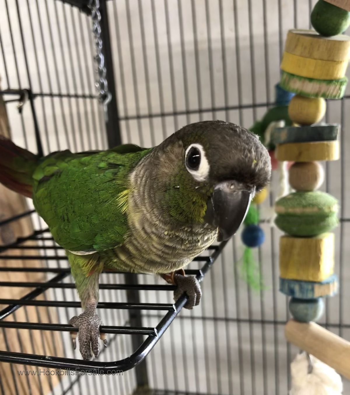 I have 1 baby left which is a regular green cheek conures and $300 each, price is NON NEGOTIABLE. They are all from the same clutch and hatched in November 2017. They’re eating a variety of fresh veggies, fruits, pellets, nuts, and limited seeds.