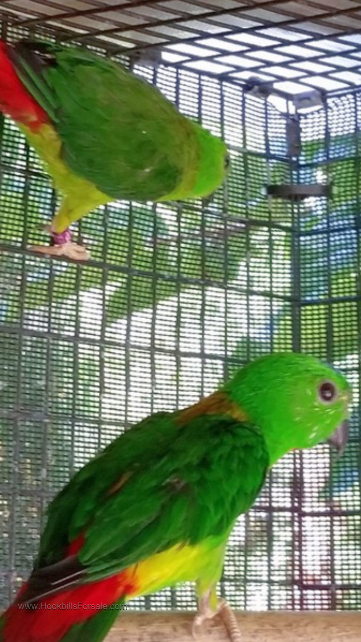 2016 hatch blue crowned hanging parrots for sale. Banded and unrelated pair. Parent raised.