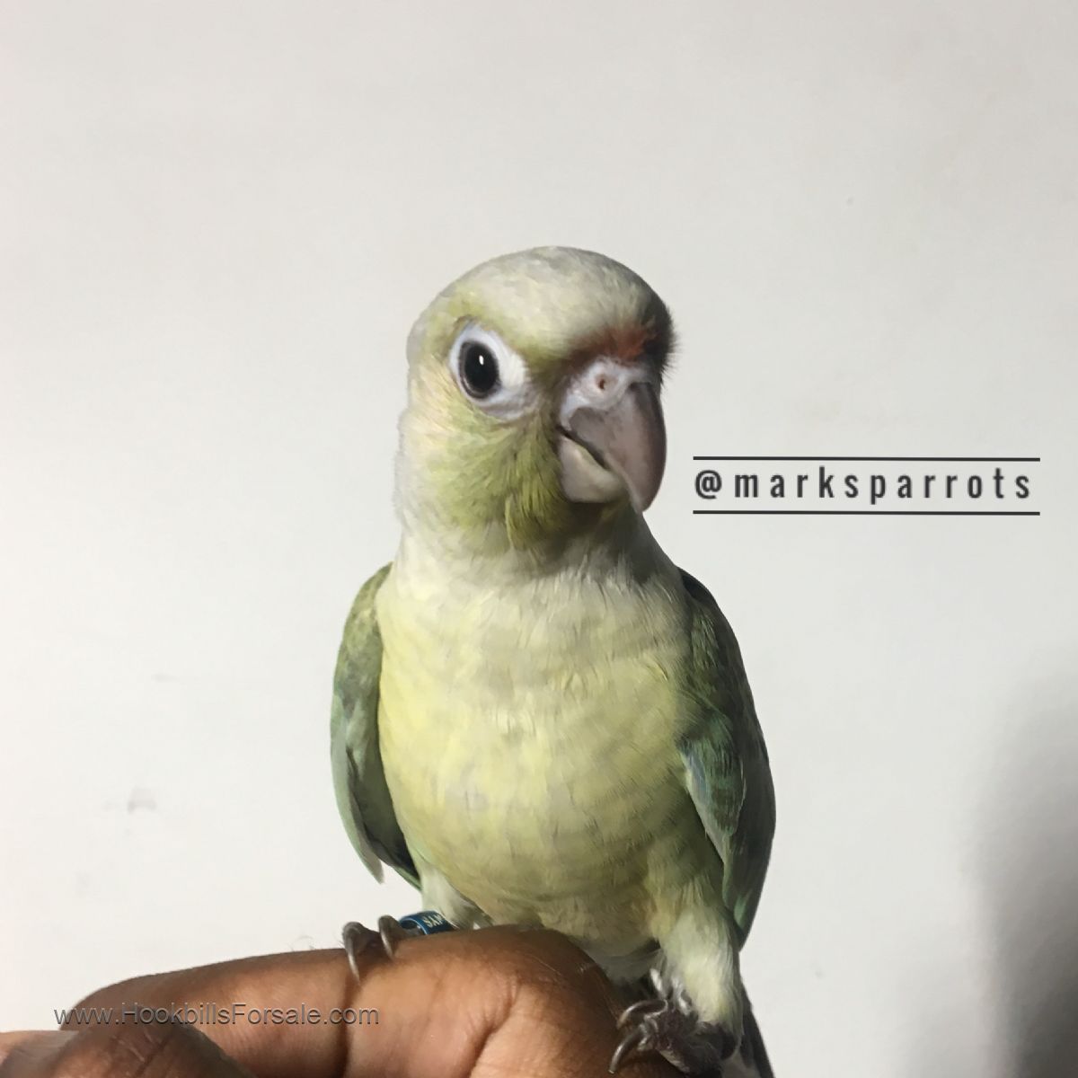 I have a baby MINT Green cheek conure now available .They are fully weaned on roudybush maintenance pellets along with a variety of fruits and veggies . We ship Via Delta Airlines Check us out on Instagram at instagram.com/marksparrots
