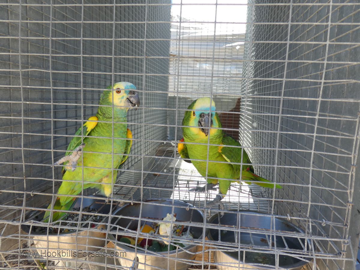 This is a beautiful, productive pair of Blue Fronts, the rare Chaco subspecies, excellent feather and health. Feed their young, male talks some. Love to eat all fruits & veggies and bathe.