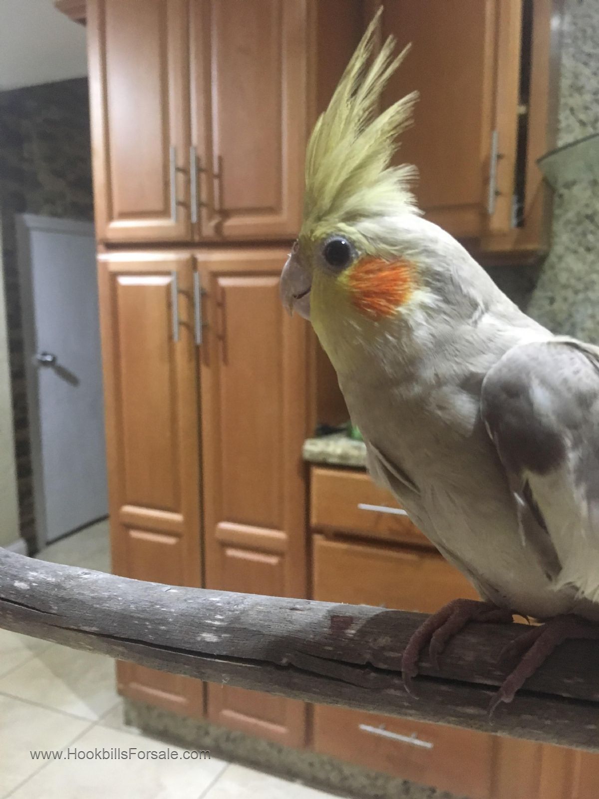He is a 3-4 month old male cockatiel. He likes to whistle.