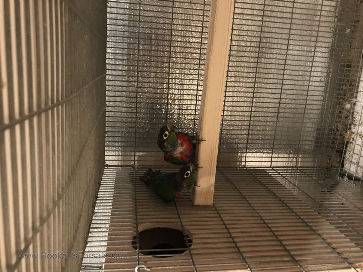 Bonded pair of crimsons. Breeders. Egg layers for me. 5 years old. Female has a small patch of feathers missing on her chest.