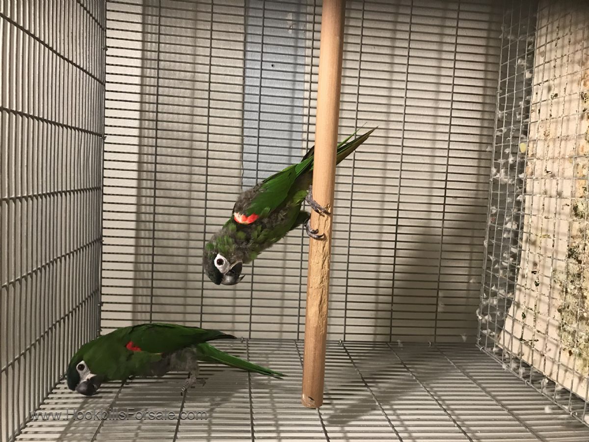 Pair of Hahns macaw. Proven for previous owner. Eggs layers for me. Feathers are a bit rough. First clutch was clear. They are getting ready to lay again. Was told they are 9-10 years old. Getting out of mini macaws.