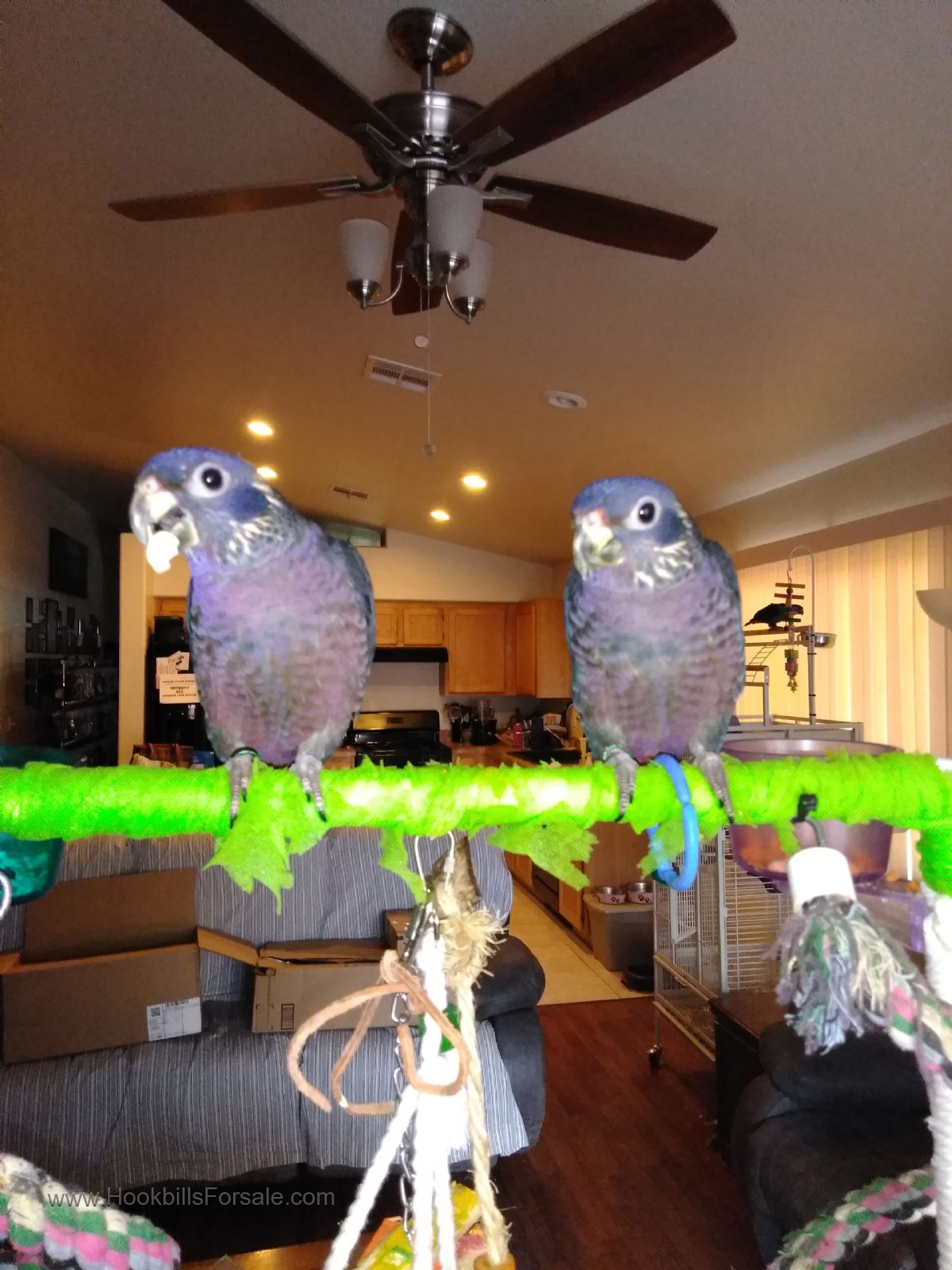 Located in Las Vegas, NV - Pick up only - No shipping. 2 DNA Male Dusky Pionus with hatch dates of 4/12/18 and 4/17/18, they are completely weaned and ready for their forever homes. They both have great personalities and love to be out of the cage and with people. Adoption is $900 Cash. I do offer a 72 hour health guarantee.