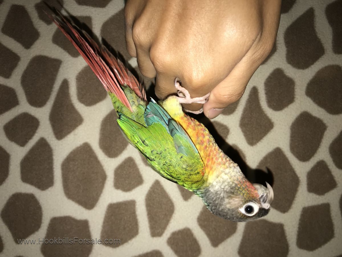 Beautiful Handfed Baby Yellow sided conures, pineapple, turquoise, cinnamon, red factors Green Cheek and some split to suncheek also normals are available for $175 and up depending on colors and mutations For Serious Inquiries, Call or Text 562-965-9167.