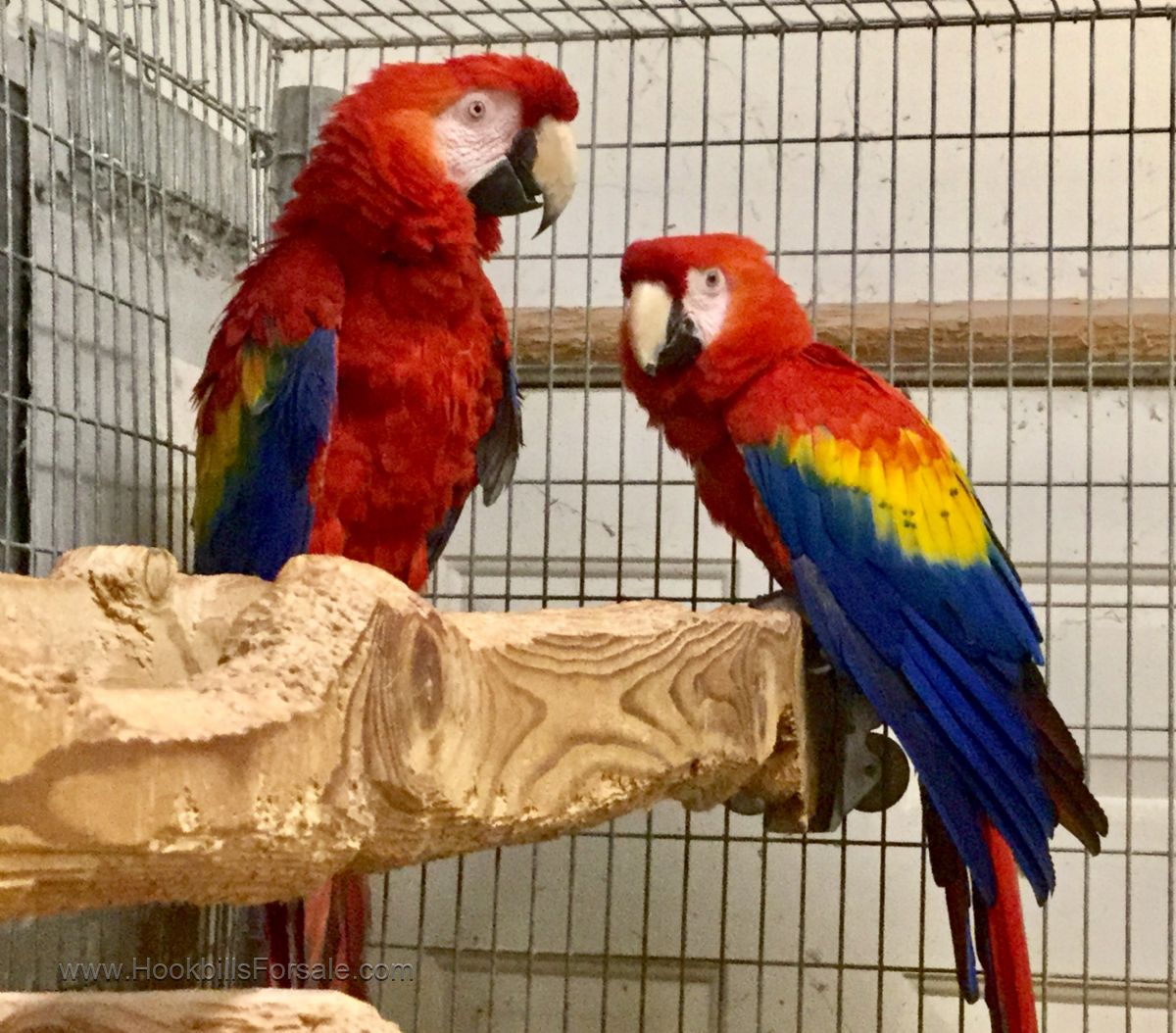 Beautiful pair of proven scarlets. Very bonded pair.. Will sit and feed until you take the babies out. Excellent diet. 3-5 babies a year. Will ship. $5000.00