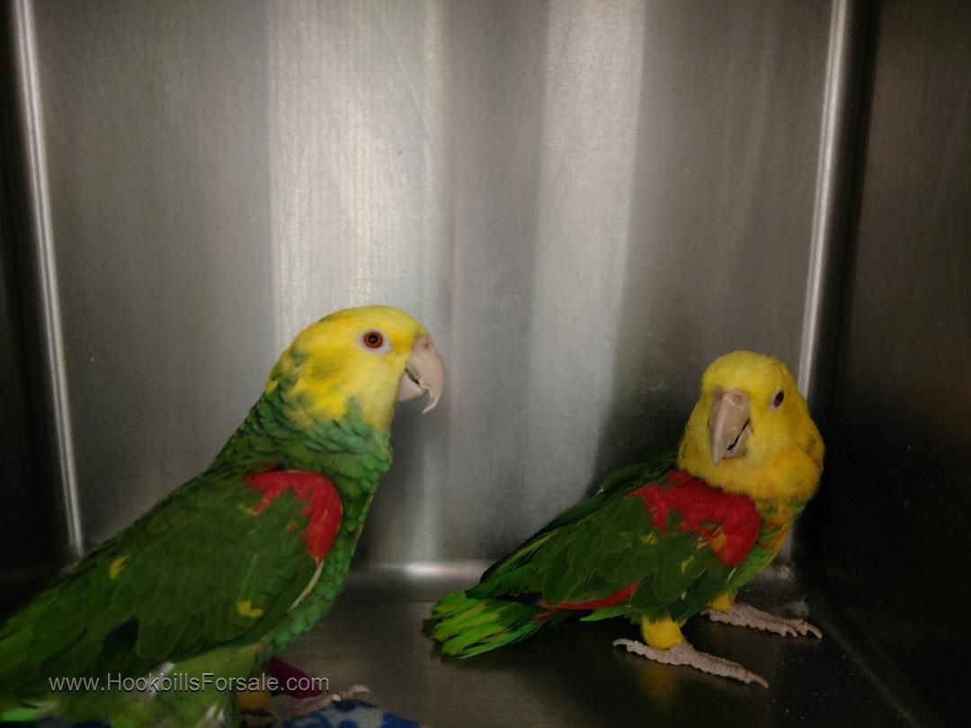 Extreme yellow and red. We were in for a vet check up and got a chance to take pictures without the cage wire getting in the way. Both pairs have produced and I also have a two year old male that I held back for breeding. Glad to send additional pictures or references. Please no scams or trade offers. Thank you for your interest.
