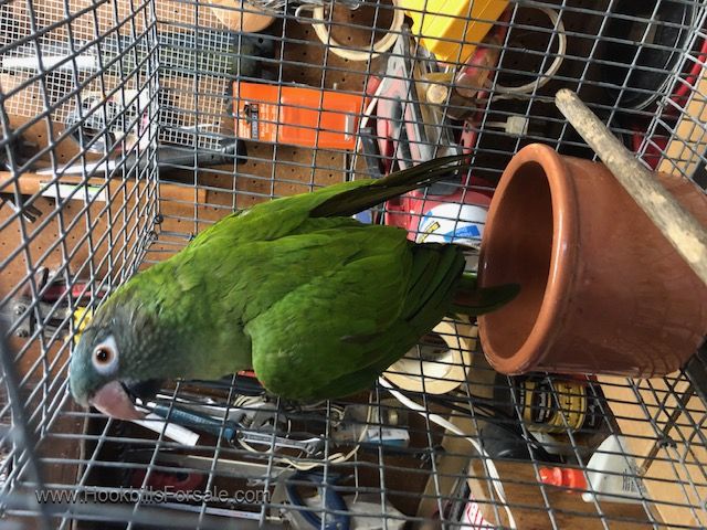 Blue Crown Conures are getting difficult to find and hand-fed babies make lovable and entertaining pets. This bird is not tame and is being offered for breeding.