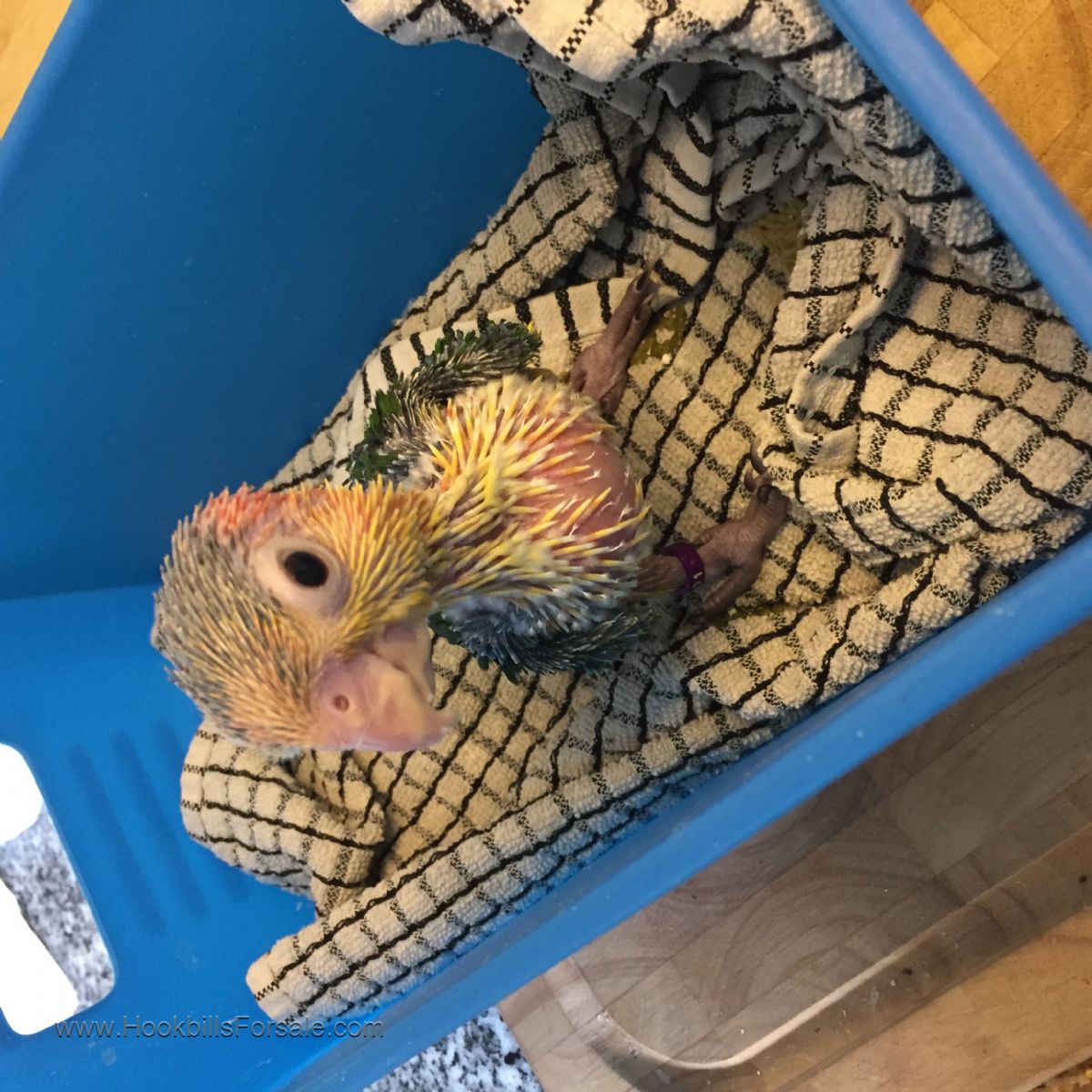 Each will be closed banded and weaned onto sprouts, chop, pellet and quality, low-fat seed. They are water bottle trained before going home.