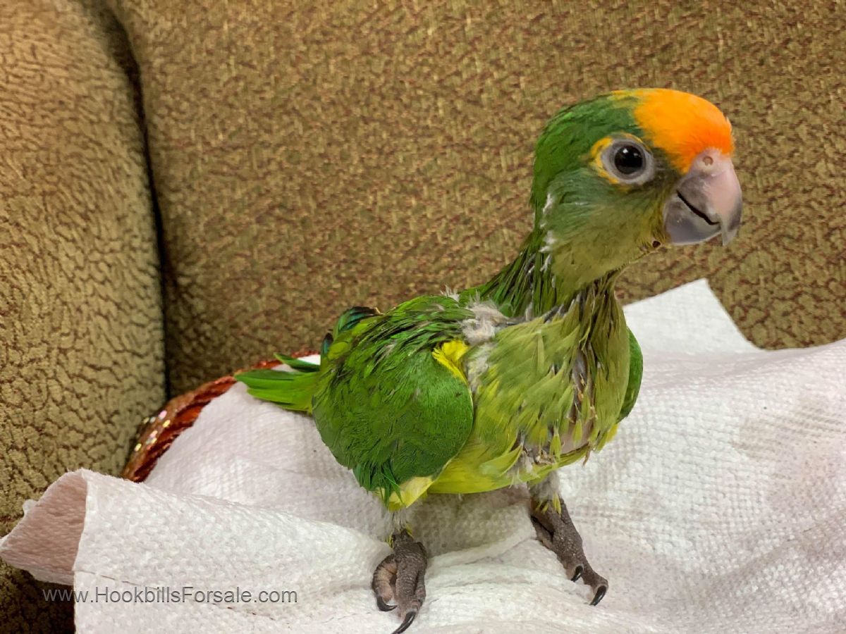 Peach Fronted Conure baby! All of our beautiful birds are raised with care and love. We put our hearts otni these magnificent creatures.