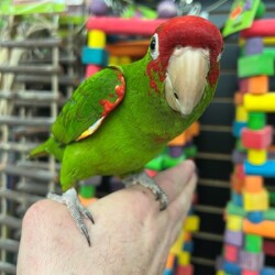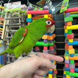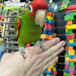 Very sweet and tame Cherry Head Conure available. We are very happy to have this species in as they are hard to find and are known to be good talkers and mimickers. WE DO SHIP!!! We offer financing go to birdmansparrots.com and apply today or call 773-317-3785.