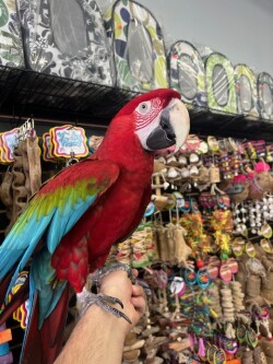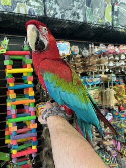 Very sweet and tame Say hi to "BELLA" she is a beautiful extra large Greenwing Macaw. WE DO SHIP!!! Please call 773 317 3785 for more info. ***CALL FOR PRICE***