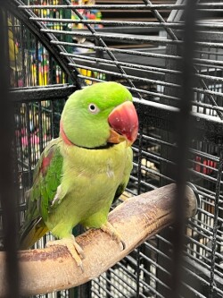 Adult Alexandrine Ringneck not tame, purchased this bird to set up for breeding but couldn't find female for it. The bird is in good health and feathering. Right wing on the bird is not fully mobile cannot flap its right wing normally. Other than that bird is beautiful and big. WE DO SHIP!!! We offer financing go to birdmansparrots.com and apply today or call 773 317 3785.