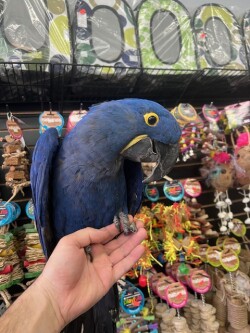 Very sweet and cuddly big Hyacinth Macaw say hi to "UNO" he is a dna tested male and is a big cuddler. WE DO SHIP!!! We offer financing go to birdmansparrots.com and apply today or call 773 317 3785. ***CALL FOR PRICE***
