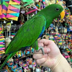 Sweet baby Solomon Island Eclectus male weaned and ready for its forever home. WE DO SHIP!!! We offer financing go to birdmansparrots.com and apply today or call 773-317-3785.
