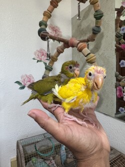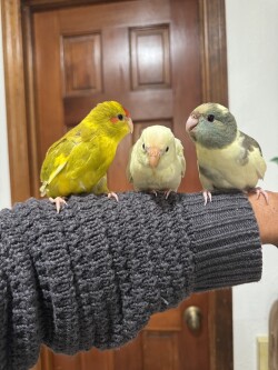 Baby Kakarikis, some green, blue, pieds. Starting with handfeeding green $250 for green handfeeding or $350 for once weaned. Blues starting at $350, $450 once weaned.