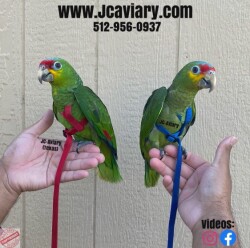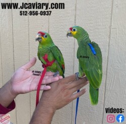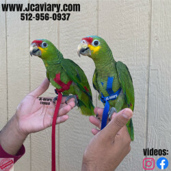 Incredibly sweet and fully trained red-lored amazon babies ready now for their forever homes. They are weaned on a healthy diet of organic pellets, veg and mixed nuts. All our babies are sweet and very socialized. Please see our website 4 detailed info! For inquiries please call-- 512-956-0937