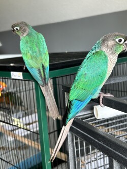 Handfed turquoise green cheek conures. 3 available. One is dna tested female, other two not dna tested yet so sex currently unknown. These are gorgeous birds, hand tame. Currently 11 weeks old. $350 each.