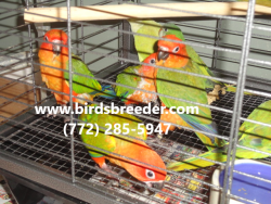 Baby red factor Sun Conures available at $750 each. Multi-purchase discount available