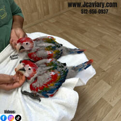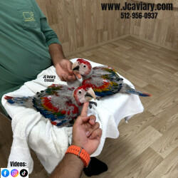 Accepting reservations on these 2 adorable Ruby macaw babies. This hybrid is cross between Greenwing x Scarlet macaw. They are now being hand-fed and will eventually be fully trained by us as well. They will be on a healthy diet of organic pellets and vegetables. All our babies are sweet and very socialized. Please see our website for detailed info! For all inquiries please call-- 512-956-0937