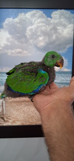Handfeeding sweet male eclectus baby. Baby will be weaned onto Zupreen natural pellets and mixed veggies. $1500 will hold until weaned.