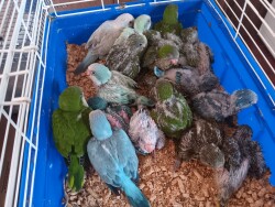 Quaker babies 2 to 7 weeks old Hand feeding 3 to 4 times a day Greens 125. Blues 175. Albino 320. Latino 350. Blue pallid 175. Green Opaline 150. Olive 125. Blue Opaline 200. Cremino Hen 325. Blue crossover 300. Etc. Call richard saint petersburg florida 727 542 7341