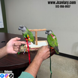 Incredibly sweet and trained senegal parrot babies ready now for their forever homes. They are weaned on a healthy diet of organic pellets, veg and mixed nuts. All our babies are sweet and very socialized. Please see our website for detailed info! For all inquiries please call-- 512-956-0937