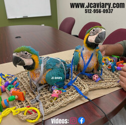 Accepting reservations on these adorable Blue and Gold macaw babies. They are currently being hand-fed and will eventually be fully trained by us as well. They will be on a healthy diet of organic pellets and vegetables. All our babies are sweet and very socialized. Please see our website for detailed info! For all inquiries please call-- 512-956-0937