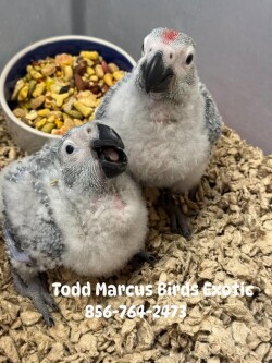 We have 6 Congo Grey babies available now! 3 feedings per day and both males and females available! Here at Todd Marcus Birds Exotic, we have over 40 years of experience raising the happiest & healthiest baby birds. We are conveniently located in Delran, NJ which is just outside of Philadelphia. We are open 7 days a week, Monday-Saturday from 9am-8pm and Sunday 10am-5pm. Our store has everything you need from Cages, Food, Toys, & more! Check out our website Thebirdstore.com if you can’t make it in and have your supplies shipped to you! We ship birds throughout the country with Delta, American, or Alaska Airlines Cargo.