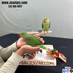 Alexandrine parakeet babies. DNA tested male and female available. They are still being hand-fed and will be fully trained by us as well. They will be on a healthy diet of organic pellets and vegetables. All our babies are sweet and very socialized. Please see our website for detailed info! For all inquiries please call-- 512-956-0937