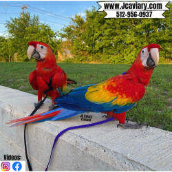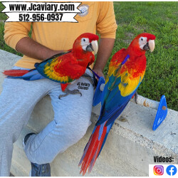 Accepting reservations on these incredibly sweet Scarlet macaw babies. They are still being hand-fed and will eventually be fully trained by us as well. They will be on a healthy diet of organic pellets and vegetables. All our babies are sweet and very socialized. Please see our website for detailed info! For all inquiries please call-- 512-956-0937