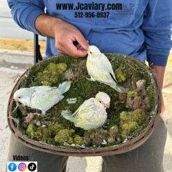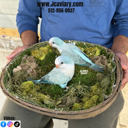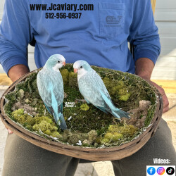 Quaker/Monk parrot babies. We have blue, yellow and turquoise colors available. They are currently being hand-fed and trained by us as well. They will be on a healthy diet of organic pellets and vegetables. All our babies are sweet and very socialized. Please see our website for detailed info! For all inquiries please call-- 512-956-0937