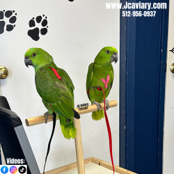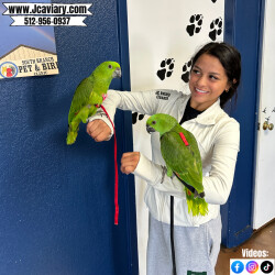 Incredibly sweet and fully trained yellow naped amazon babies ready now for their forever homes. They are weaned on a healthy diet of organic pellets, veg and mixed nuts. All our babies are sweet and very socialized. Please see our website for detailed information! For inquiries please call us-- 512-956-0937