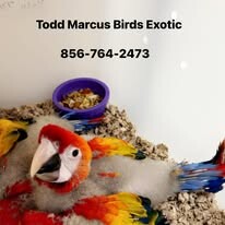 3 Stunning scarlet babies handfeeding now! These are nice large babies with wide yellow bands. Here at Todd Marcus Birds Exotic, we have over 40 years of experience raising the happiest & healthiest baby birds. We are conveniently located in Delran, NJ which is just outside of Philadelphia. We are open 7 days a week, Monday-Saturday from 9am-8pm and Sunday 10am-5pm. Our store has everything you need from Cages, Food, Toys, & more! Check out our website Thebirdstore.com if you can’t make it in and have your supplies shipped to you! We ship birds throughout the country with Delta, American, or Alaska Airlines Cargo.