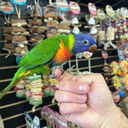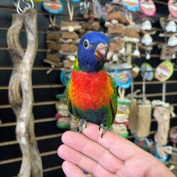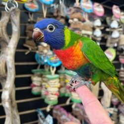 Just weaned and ready for its new home is a sweet and beautiful Blue Mt. Lorikeet. We offer financing go to birdmansparrots.com and apply today or call 773-317-3785.