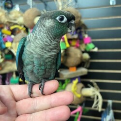 Just weaned is a sweet baby Turquoise Green Cheek Conure. We offer financing go to birdmansparrots.com and apply today or call 773-317-3785.