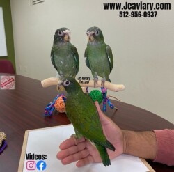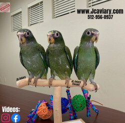 Accepting reservations on these adorable White capped pionus babies. They are currently being hand-fed and fully trained by us as well. They will be on a healthy diet of organic pellets and vegetables. All our babies are sweet and very socialized. Please see our website for detailed info! For all inquiries please call-- 512-956-0937