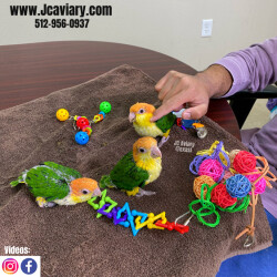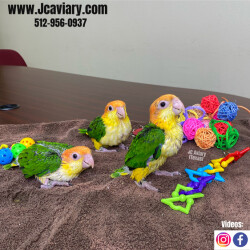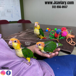 Accepting reservations on these adorable White bellied caique babies. They are currently being hand-fed and fully trained by us as well. They will be on a healthy diet of organic pellets and vegetables. All our babies are sweet and very socialized. Please see our website for detailed info! For all inquiries please call-- 512-956-0937