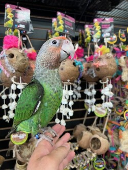 Currently hand feeding is a sweet baby dna tested male and female Cape Parrots. We offer financing go to birdmansparrots.com and apply today or call 773-317-3785.