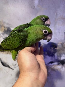 Currently hand feeding is a sweet baby Jardines Parrots, now accepting deposits to reserve. This species of Parrot makes a great pet companion as they are outgoing and comical birds, who can learn to talk and mimic sounds and are affectionate. We offer financing go to birdmansparrots.com and apply today or Call us for more info 773 317 3785.