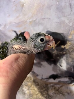 Currently hand feeding is a sweet baby White Cap Pionus, now accepting deposits to reserve. This species of Pionus makes a great pet companion as they are laid back quiet birds, who can learn to talk and mimic sounds and are affectionate. We offer financing go to birdmansparrots.com and apply today or Call us for more info 773 317 3785.
