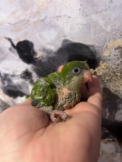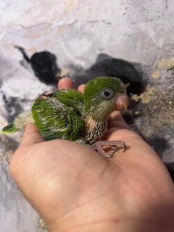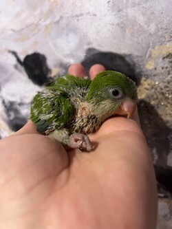 Currently hand feeding is a sweet baby Green Quaker Parrot, now accepting deposits to reserve. Call us for more info 773 317 3785.