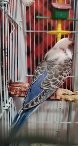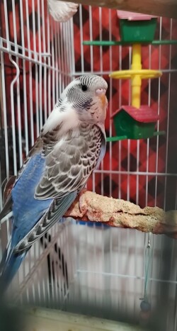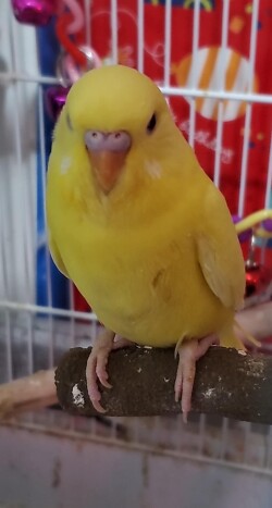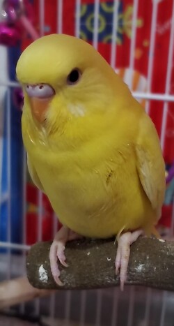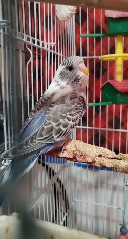 Two six week old American budgie chicks from the same clutch. Unknown genders; yellow bird is lutino, and blue/white bird is recessive pied. Both are friendly, eating out of my hands, playing and active. I simply have too many budgies to give them all a good home.