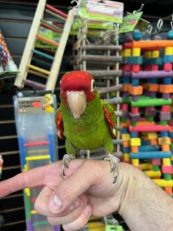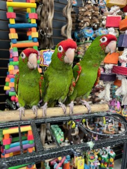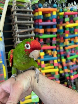 Very sweet and tame Cherry Head Conure available. We are very happy to have this species in as they are hard to find and are known to be good talkers and mimickers. We offer financing go to birdmansparrots.com and apply today or call 773-317-3785.