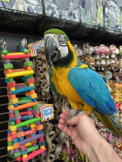 Say Hi to "OZZIE" he's a beautiful large Blue & Gold Macaw who is very laid back and sweet. We offer financing go to birdmansparrots.com and apply today or call 773-317-3785.