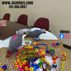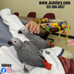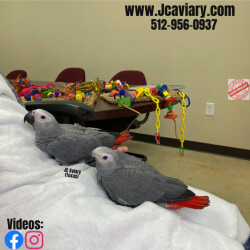 Accepting reservations on these adorable Congo African Grey babies. They are still being hand-fed and fully trained by us as well. They will be on a healthy diet of organic pellets and vegetables. All our babies are sweet and very socialized. Please see our website for detailed info! For all inquiries please call-- 512-956-0937