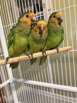 St Thomas conures baby weaning now. 1 male 2 females hand fed/tame babies. Can ship delta cargo.
