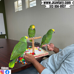 Incredibly sweet, tame, hand-fed and trained Double yellow-headed amazon babies ready now for their forever homes. These babies are weaned on a healthy diet of organic pellets, veg and mixed nuts. All our babies are sweet and very socialized. Please see our website 4 detailed info! For inquiries please call-- 512-956-0937