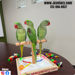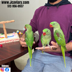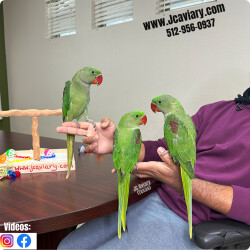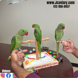 Incredibly sweet, tame, hand-fed and trained Alexandrine babies ready now for their forever homes. These babies are weaned on a healthy diet of organic pellets, veg and mixed nuts. All our babies are sweet and very socialized. Please see our website 4 detailed info! For inquiries please call-- 512-956-0937